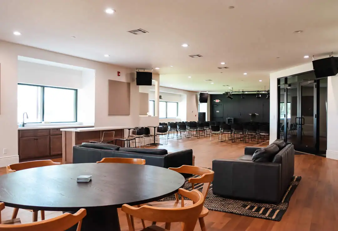 Victory Church’s Sanctuary building can accommodate up to 1,000 guests and is a flexible event space that can be configured in many different ways.